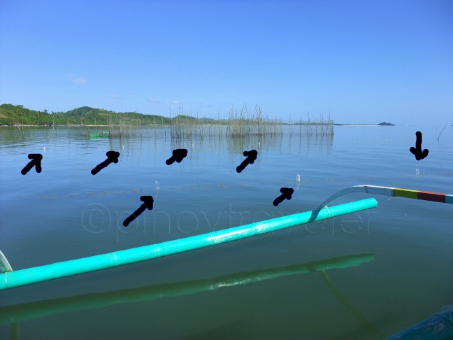 Moving out of the Bikal wharf was nice and slow. At low tide, boat had to glide along slowly since there are many things to avoid including those floating plastic cellophanes. Do you know what those are? They serve as floaters for seaweed plantations! Seaweed what?! Ah well, it is a livelihood industry in the area. They grow seaweeds that would soon be dried and sold to buyers who in turn export them mainly to Japan. I think its called agar-agar. My boatman calls them seaweeds but the deck hand calls them “gulaman” – since it is one of the most common end products that the seaweeds are made into. Hmm, something new again for my lowly brain. And I call them seaweed gardens since they’re not that vast to be called plantations!