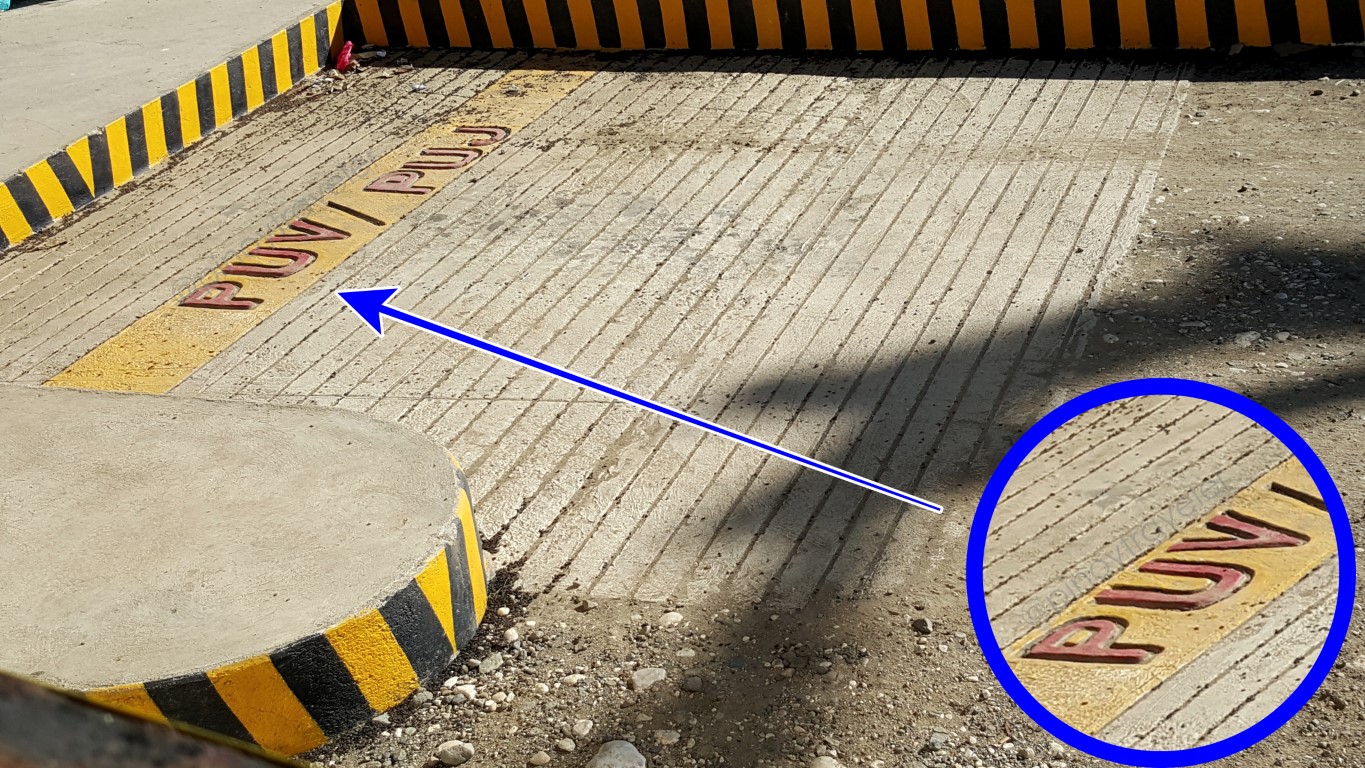 Lastly, the red arrow points to a sign that says "feet off". Eh that's exactly where you should step when climbing in or getting off, di ba? Mga binuang.., makalingaw! By the way, nice ang high-heels ni ate o!
